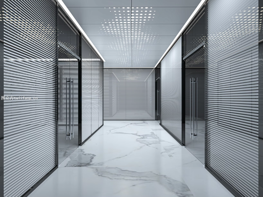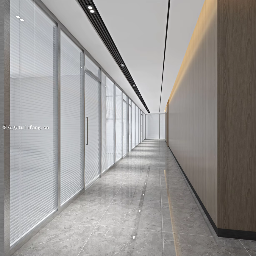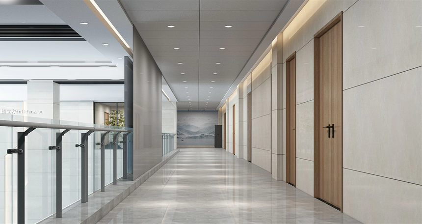 现代办公过道设计日益强调“科技赋能”,效果图需清晰展示以下智能元素: